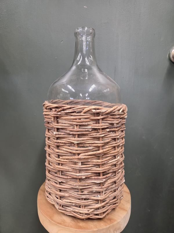 Glass Bottles In Rattan Baskets 18.25"