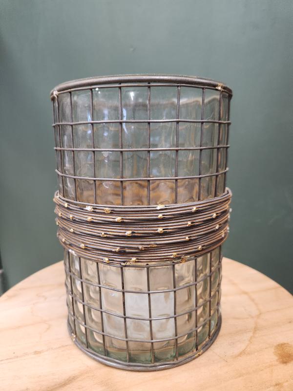 Blown Glass In Metal Cage W/wire Wrapped Center Medium