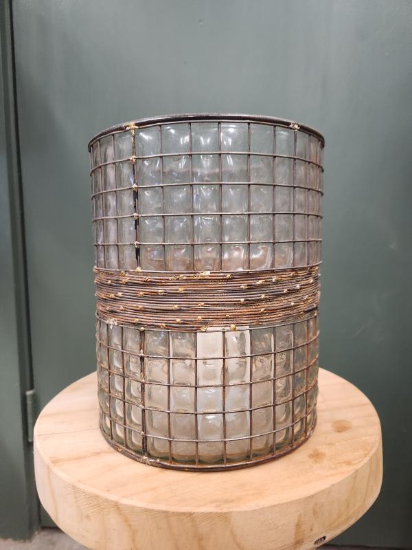 Clear Textured Glass Cylinder W/dried Leaves