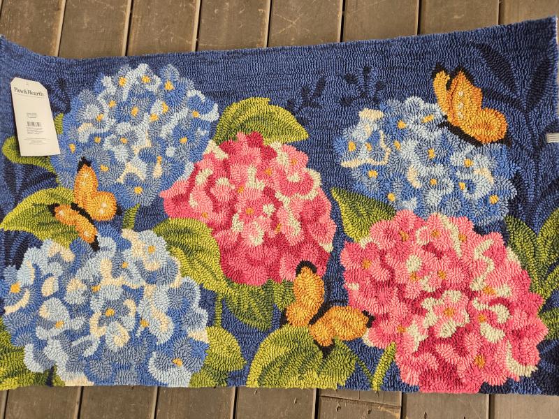 Vibrant Hydrangeas Hooked Rug Blue 24" x 42"