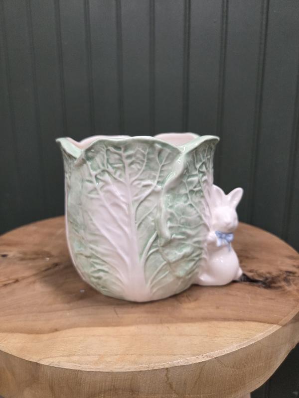 Cabbage & Bunny Cachepot White & Green