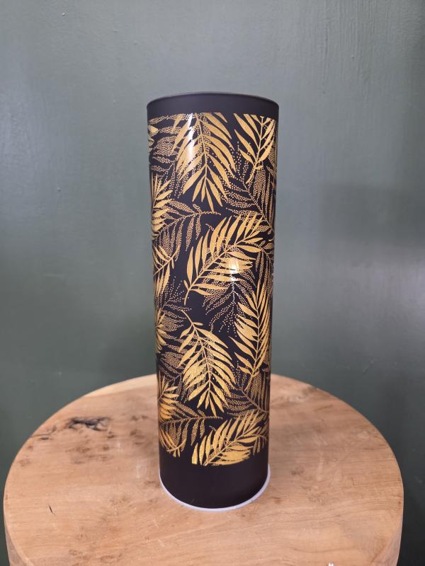 Tropical Leaves Cylinder Lantern Black 10"