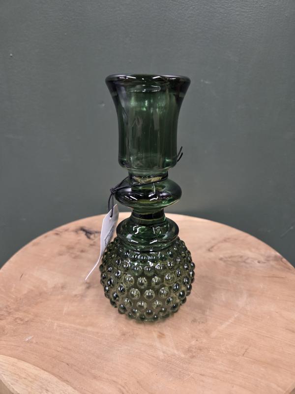 Heritage Hobnail Tealight/taper Holder Green 7 In H x 3 In L x 3 In w