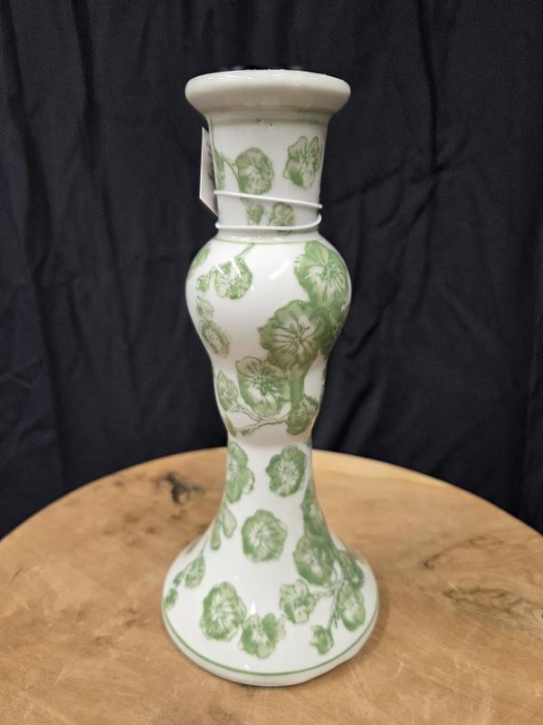 Green Cherry Blossom Candlestick Green/white 4"D x 7.25"H