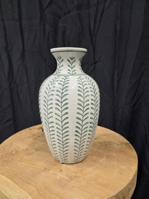 Green Bud Vase Green/white 4"D x 8"H