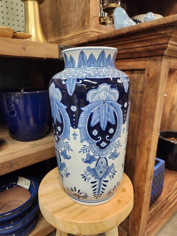 Blue and White Squat Covered Ginger Jar