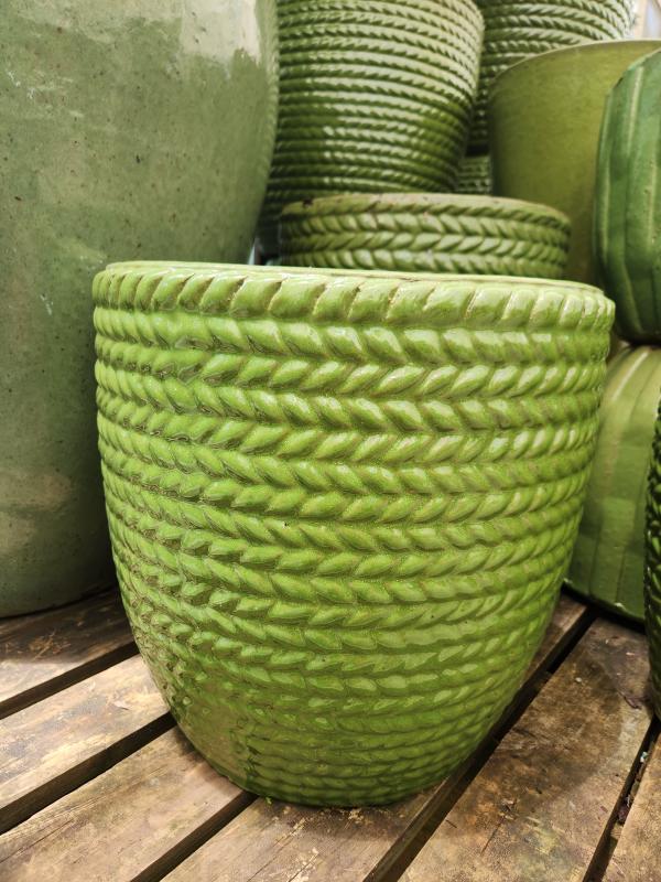 Edgewood Planter Roping Green 15" x 14"