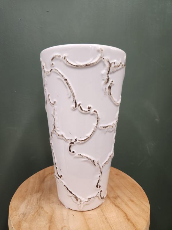 Ceramic Vase W/scroll Design White 11"